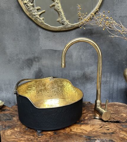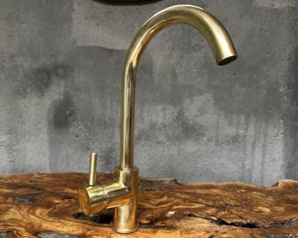 Our brass Gooseneck Faucet. Crafted from solid brass, it’s durable and timeless. The unlacquered finish adds warmth and charm. This