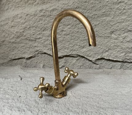 Unlacquered Brass Faucet – Gooseneck Bathroom Tap