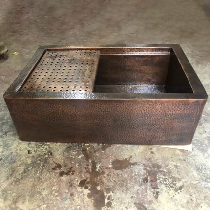 Our Copper Hammered Farmhouse Sink is a Crafted from Copper, this large kitchen sink combines timeless elegance with exceptional durability.