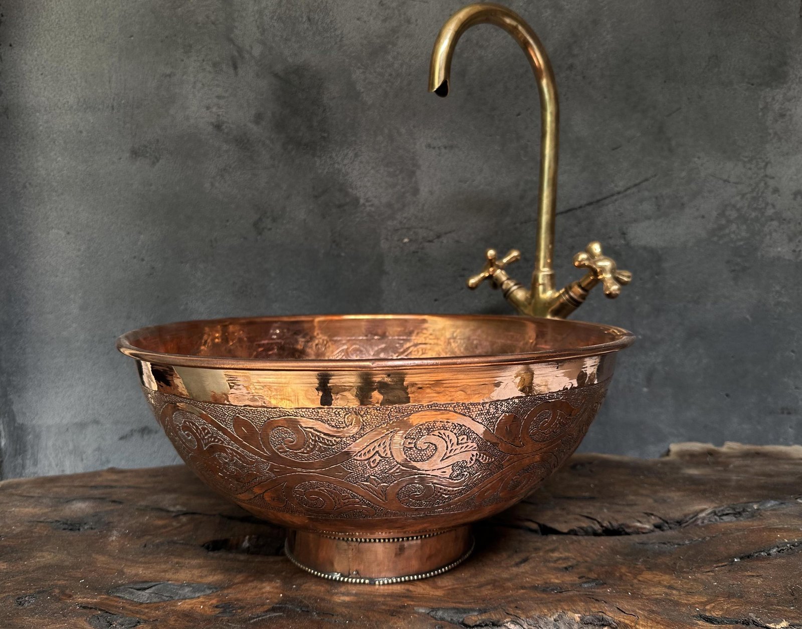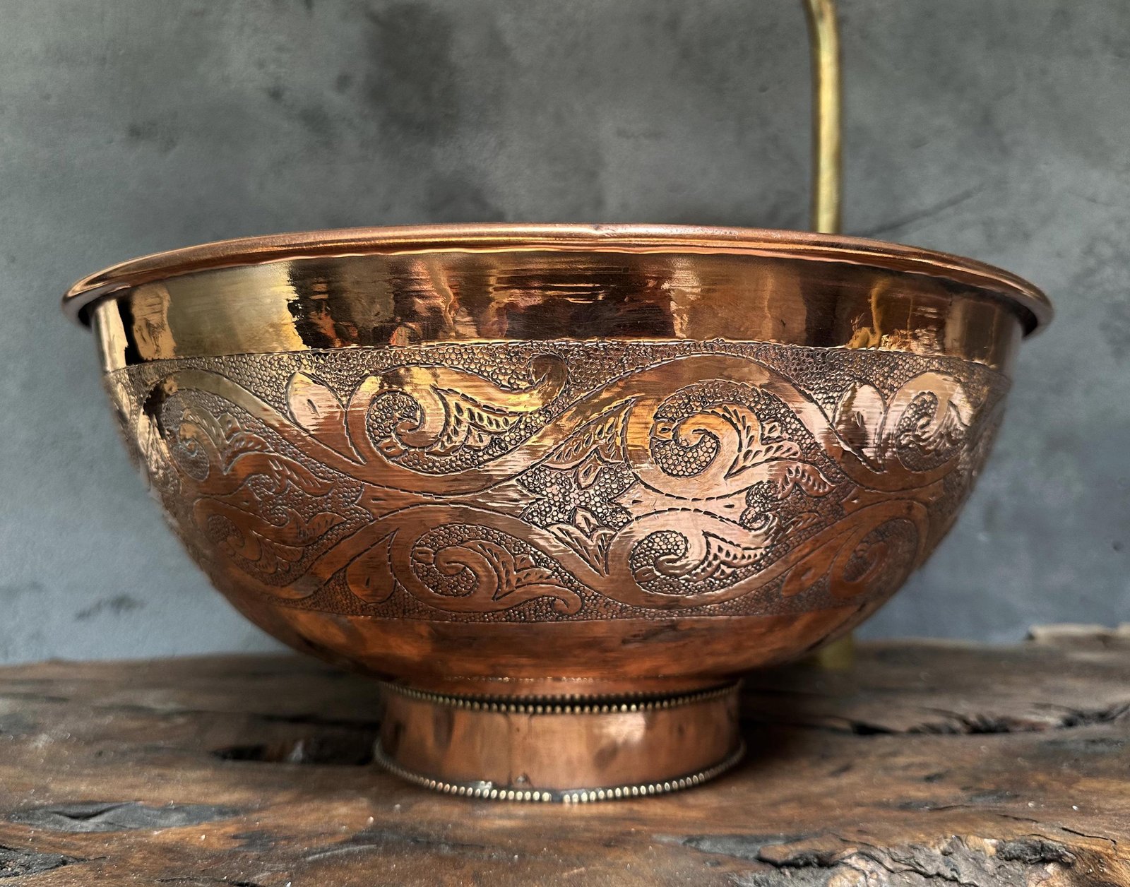 Hammered Copper Basin – Engraved Round Vessel Sink