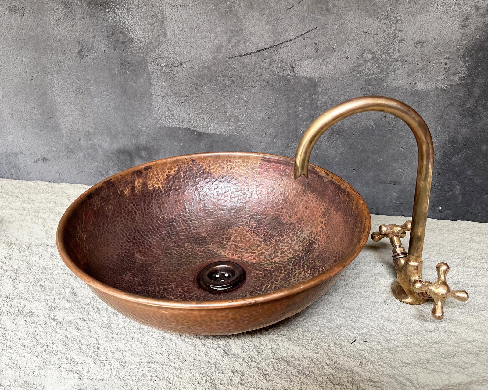 Round Copper Vessel Sink – Aged Bathroom Vanity Basin
