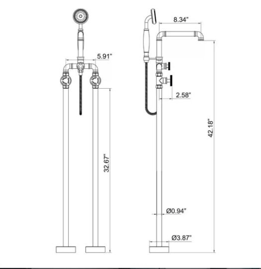 Featuring a hassle-free installation with just two holes and a ceramic valve, this faucet is easy to install and maintain. The included 59.06” hose length offers flexibility in placement and ease of use. With a water pressure of 0.8 pma, this bathtub faucet delivers a steady and consistent flow, guaranteeing a luxurious spa-like experience.