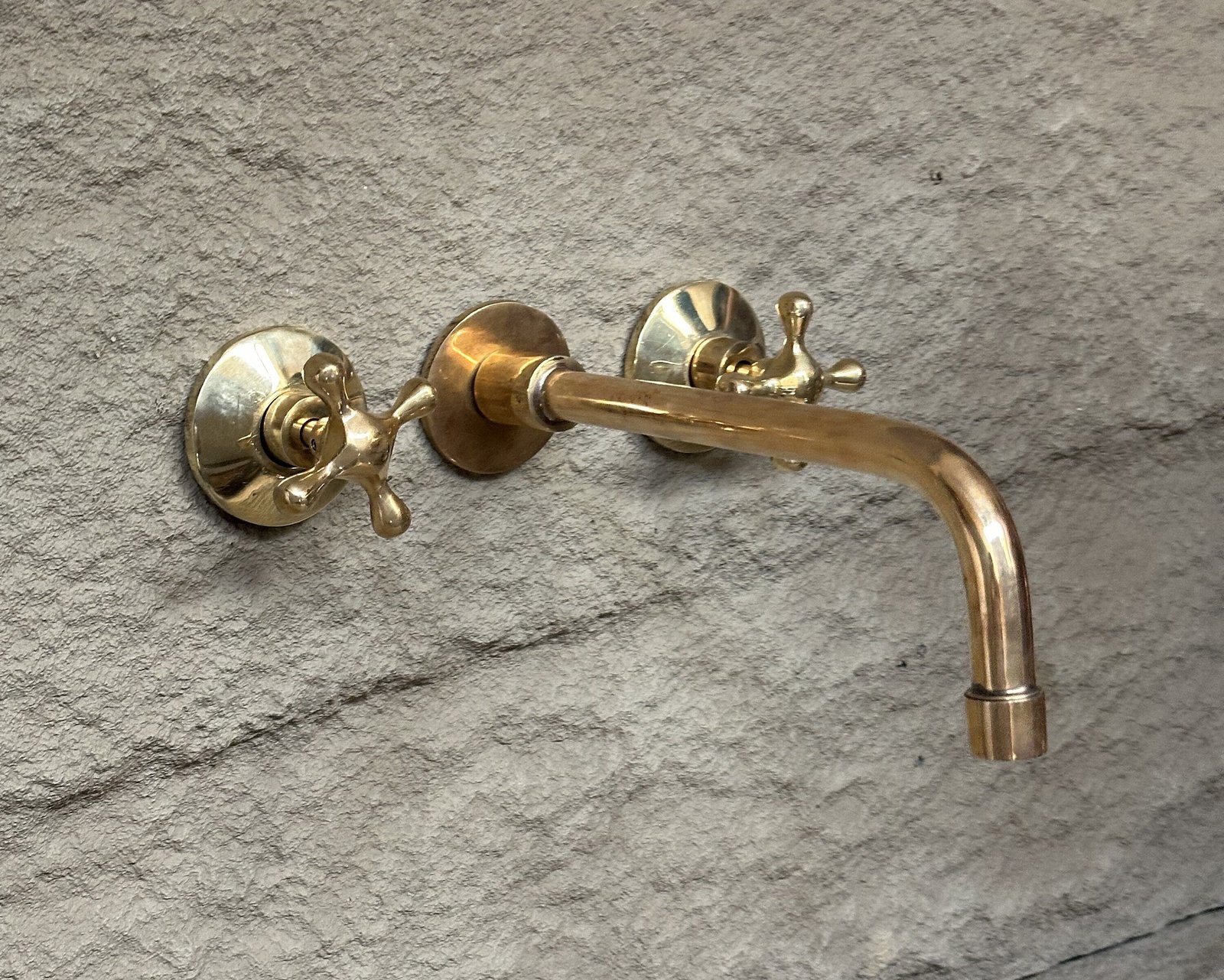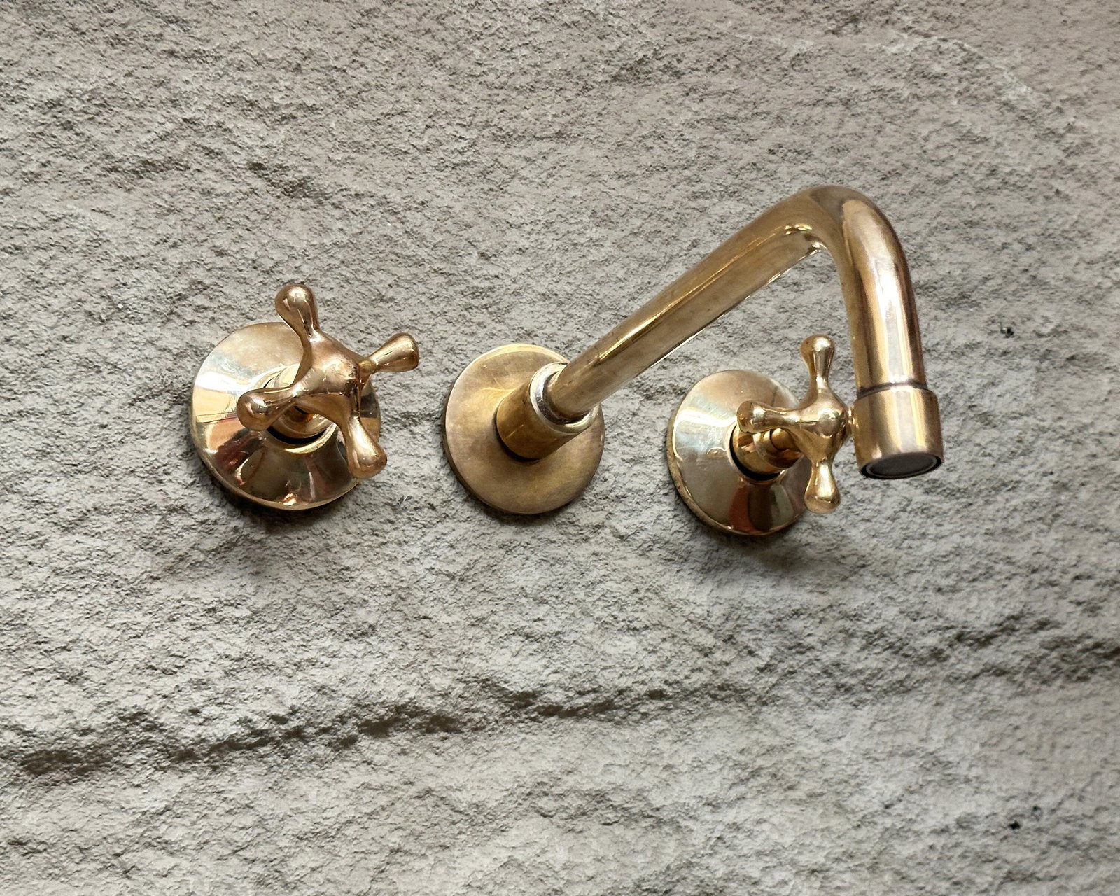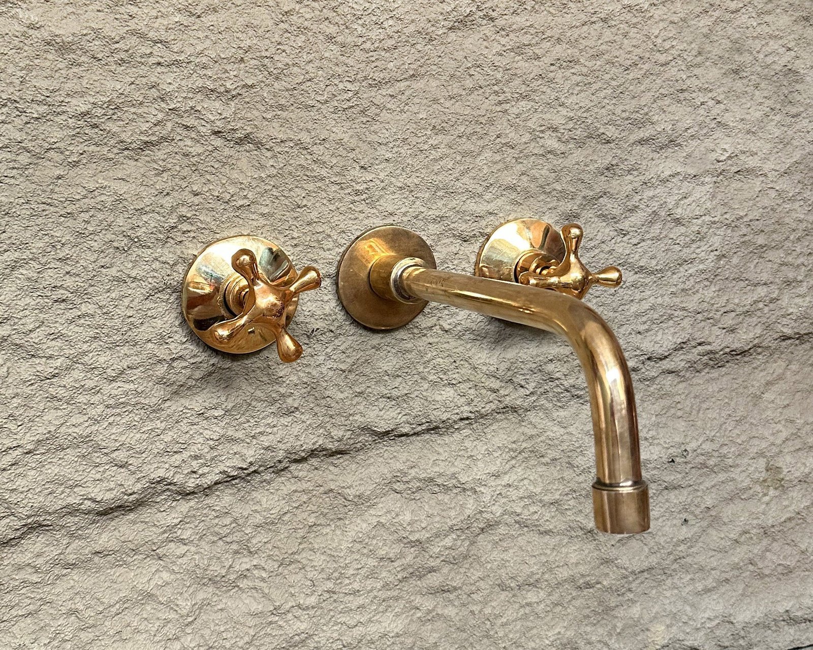 Handcrafted Unlacquered Brass wall mount bathroom faucet made from pure solid brass