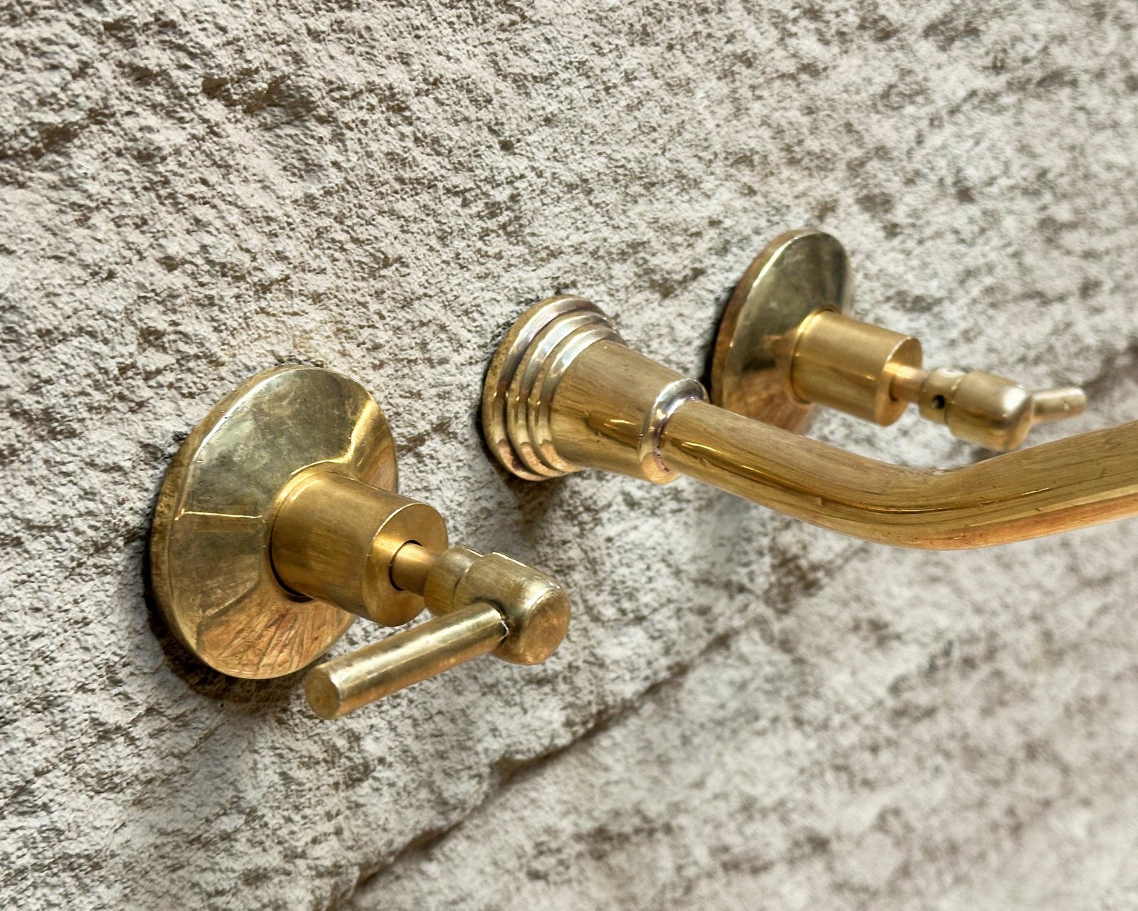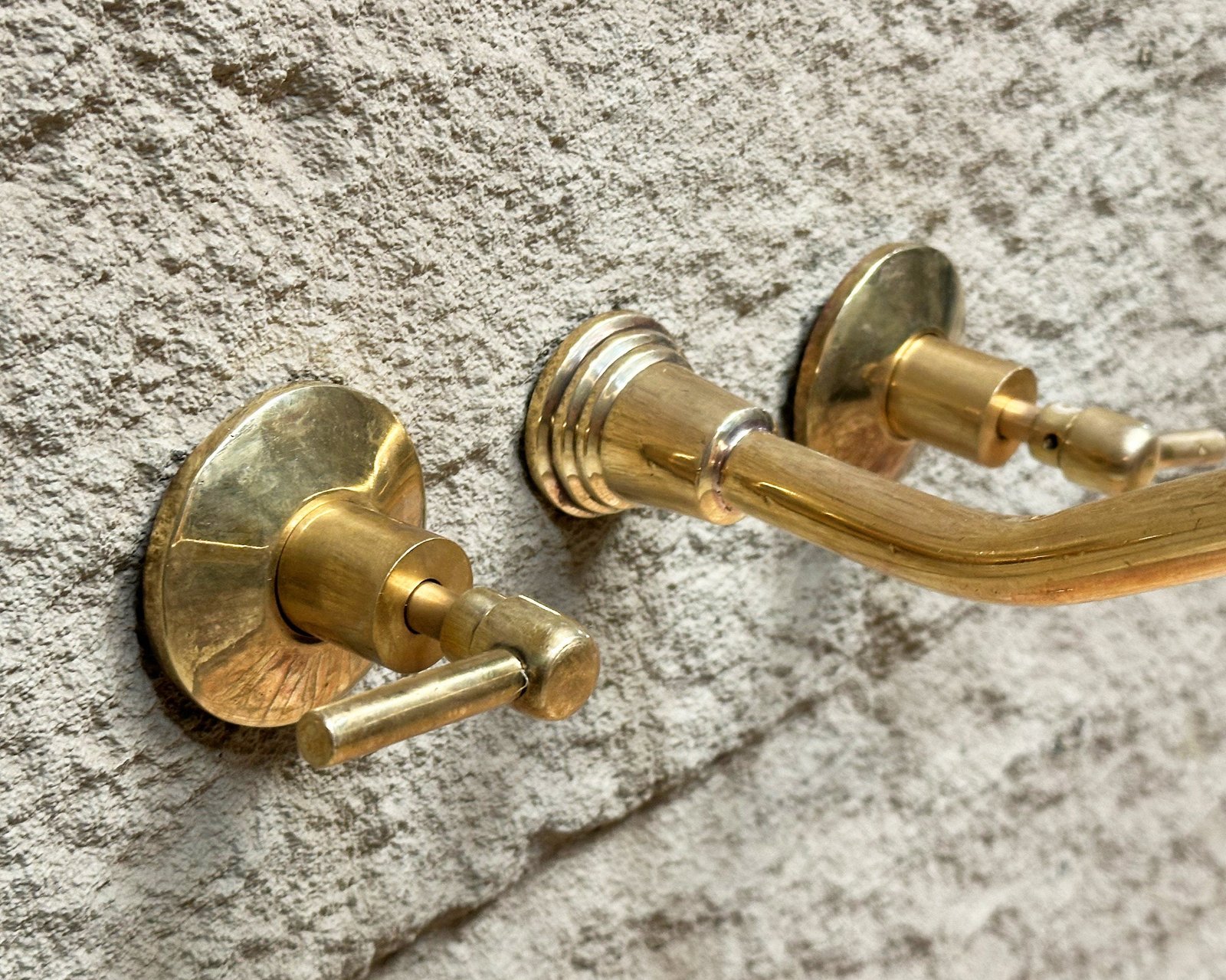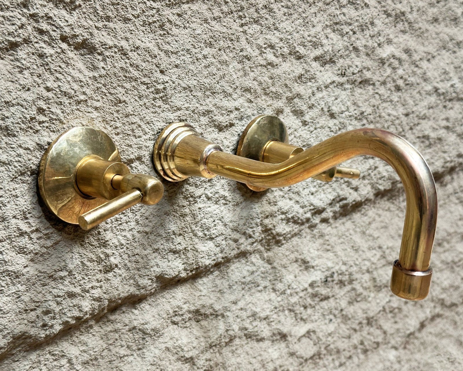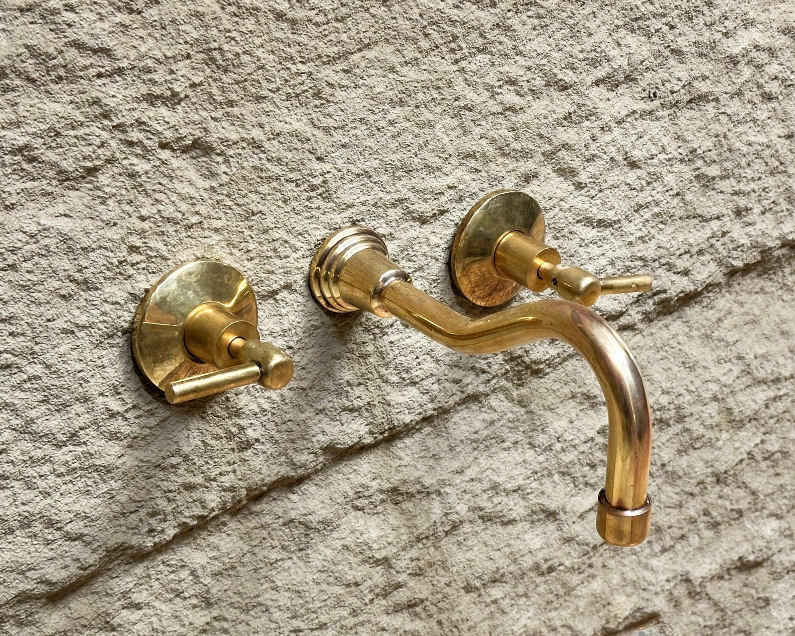 Solid Brass Wall Mounted Faucet, Unlacquered Brass Bathroom Faucet